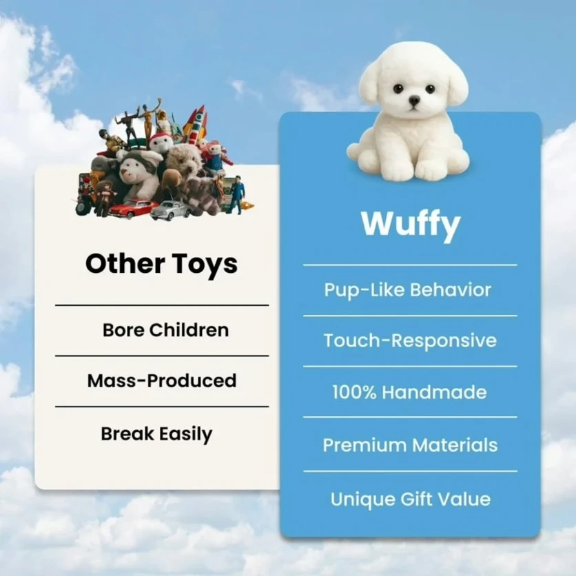 Wave your hand, tap the head, or pet its back — Wuffy responds instantly.